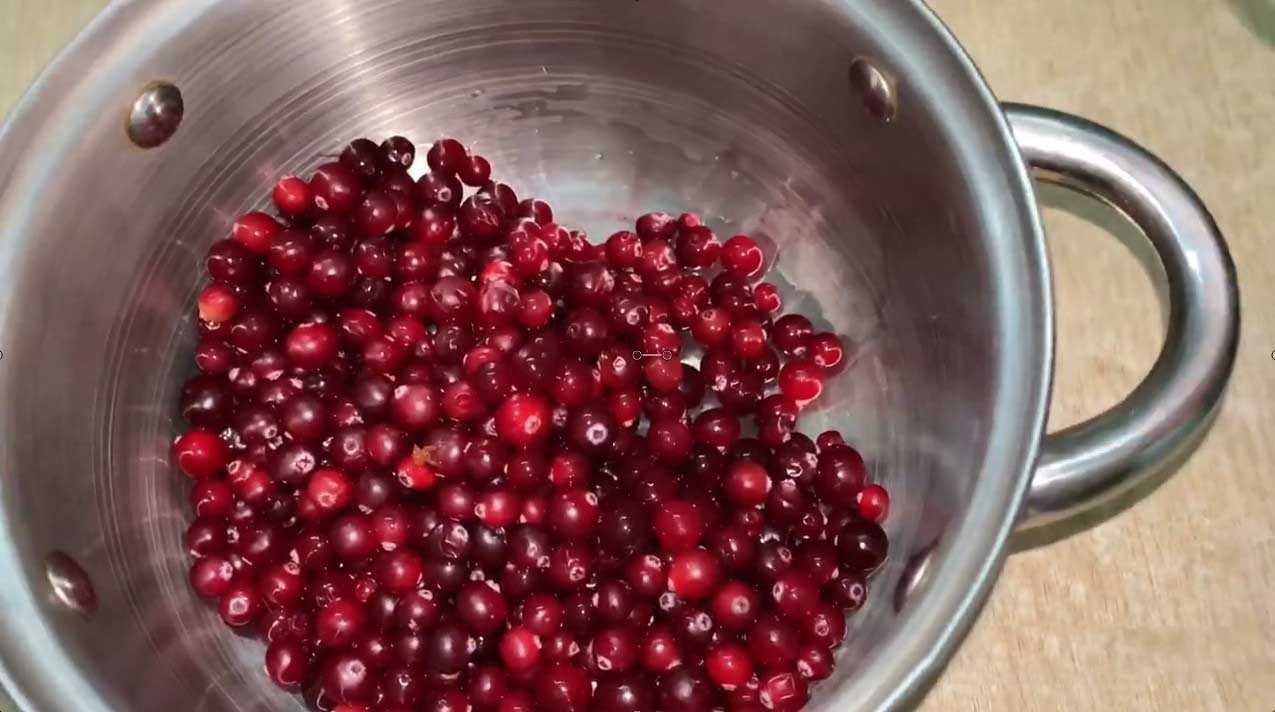 Нам потребуются: стакан чистой клюквы, полстакана сахара, три стакана воды.