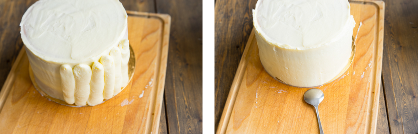 . - Приложить к боковинам торта, чтобы панели слегка перекрывали друг друга.