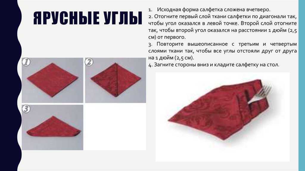 - Все салфетки любого качества на одном столе складывайте по одной и той же схеме;