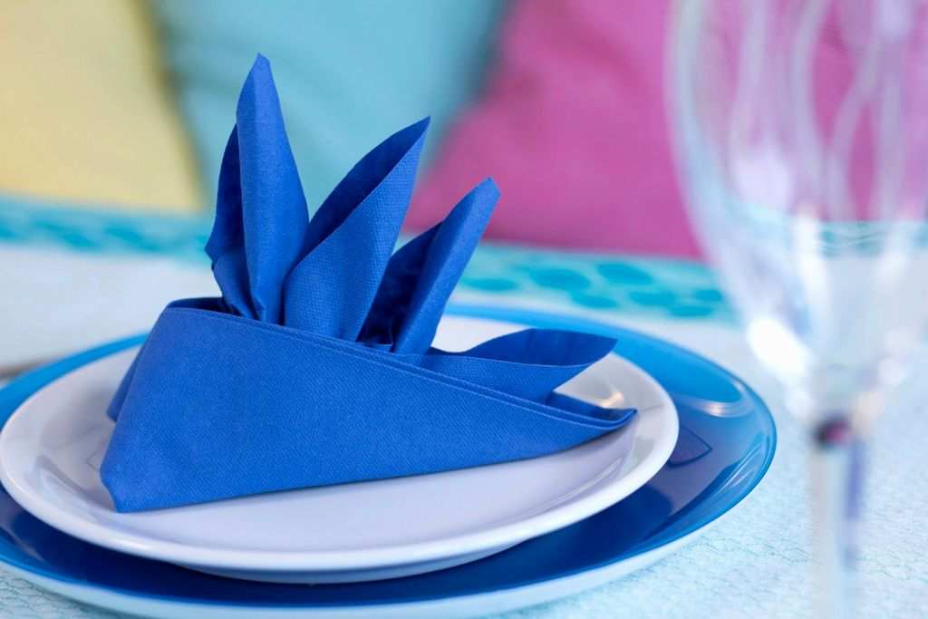 При сворачивании в технике оригами, сама фигура должна отвечать возрасту гостей. Если собралась разновозрастная группа, можно использовать несколько приемов или способов складывания бумажных и тканевых салфеток.