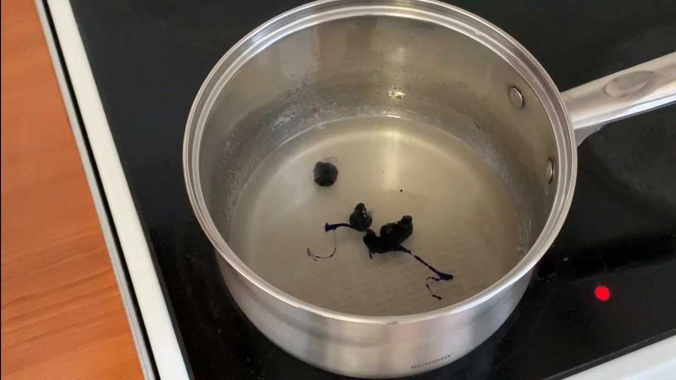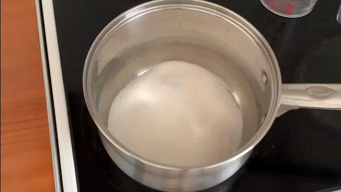 - А спустя 15 минут убираем емкость с плиты и остужаем основу под мороженое.