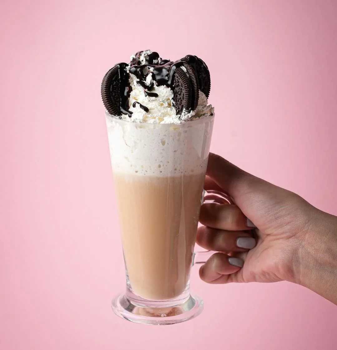 - Украсьте коктейль взбитыми сливками и сиропом.