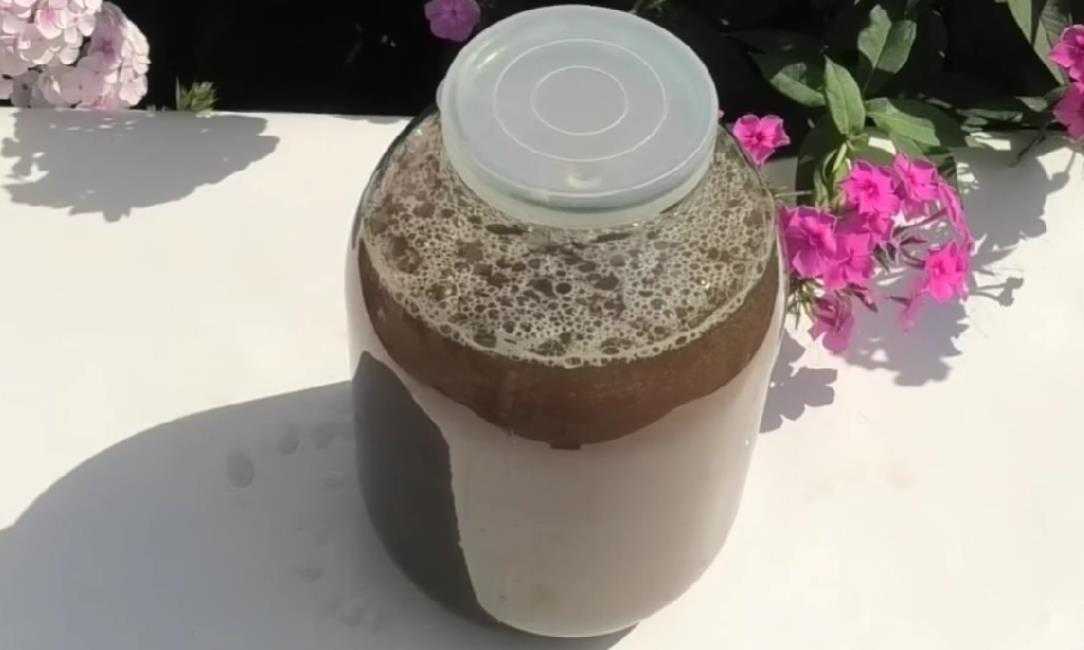 - Через 2 дня жидкость слить. В оставшуюся гущу добавить по 2 ст. л. сахара и концентрата. Залить 2 л воды, оставить еще на двое суток.