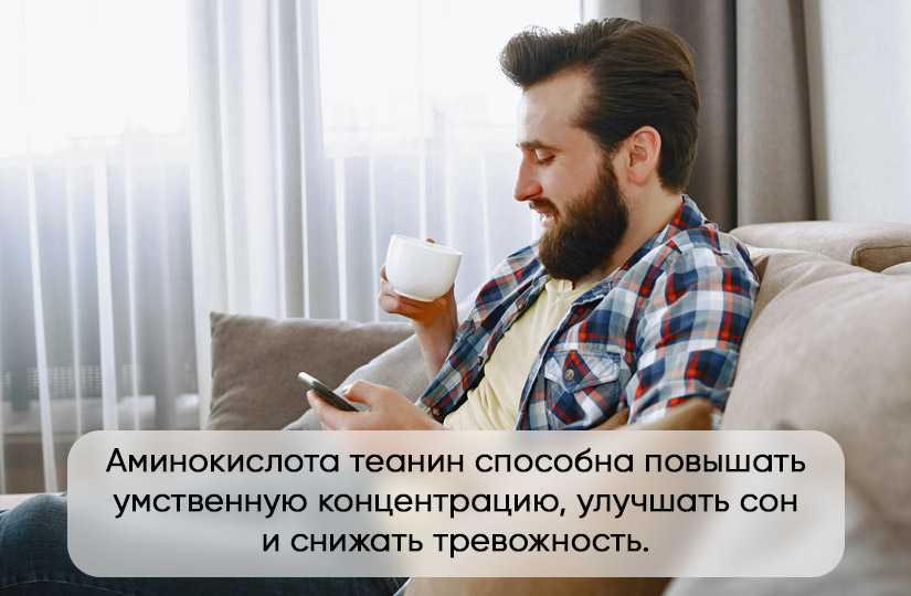 Аминокислота L-теанин в сочетании с кофеином помогает взбодриться, сосредоточиться и улучшить скорость реакции. Этот дуэт снижает уровень стресса, поднимает настроение и делает чай гораздо более мягким и долгоиграющим допингом, нежели кофе. Кроме того, кофеин укрепляет память.