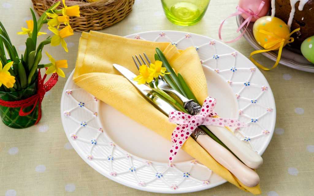 - На стол постелить скатерть, которая по тону перекликается с сервизом. Необходимо, чтобы ткань была абсолютно чистой и безупречно отглаженной. Для создания праздничной атмосферы можно украсить края скатерти бантами или лентами. Здесь все во власти хозяйки.