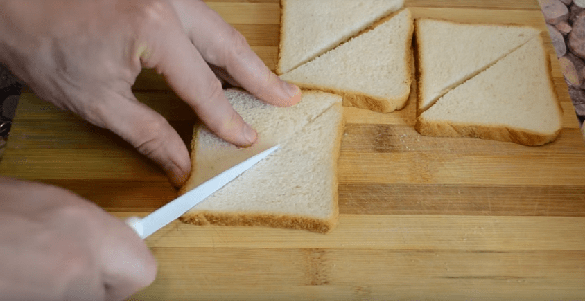 В-третьих, можно покреативить с формой хлебных ломтиков, нарезав батон сердечками, кружками, треугольниками и т.п.