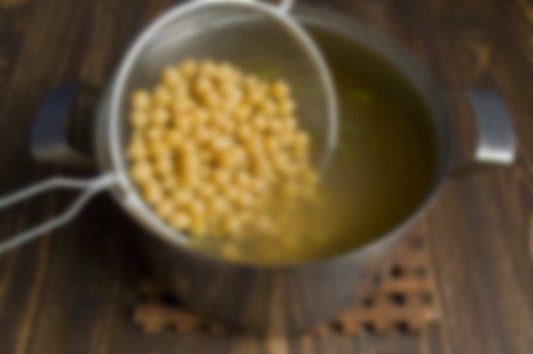 Основной продукт хумуса — нут нужно промыть и залить водой на 8-10 часов. Лучше это сделать на ночь. Утром горох промыть, вновь залить большим количеством воды и поставить вариться.