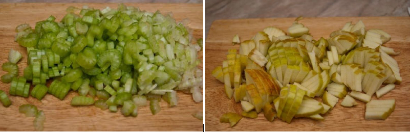 Первым делом хорошенько промываем сельдерей под проточной водой и нарезаем мелкими кусочками.