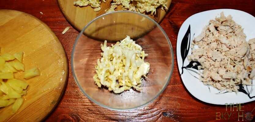 Салат с ананасом, курицей и сыром – вкусный рецепт