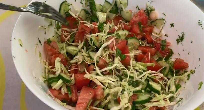 Кубанский салат из капусты, огурцов и помидоров в домашних условиях