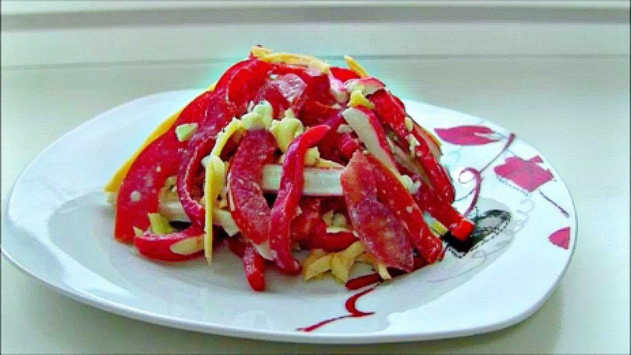 Если вы едите крабовые палочки, можно приготовить отличный салат Красное море всего за несколько минут. Его название говорит само за себя — салат Красное море с крабовыми палочками, перцем, сыром и помидорами получается яркого праздничного красного цвета. Его вкус нежный и оригинальный, как и внешний вид.