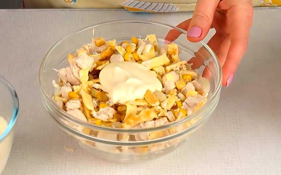Делаем салат «Нежность» с куриным филе, ананасами и сухариками