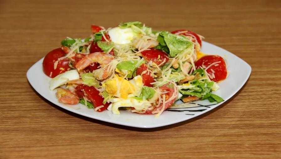 Несмотря на то, что все компоненты салата можно отыскать на полке холодильника, он отличается пикантным привкусом. Чтобы украсить готовую закуску, нужно положить в нее крупных креветок королевского сорта, потому что они делают ее изящнее и вкуснее.