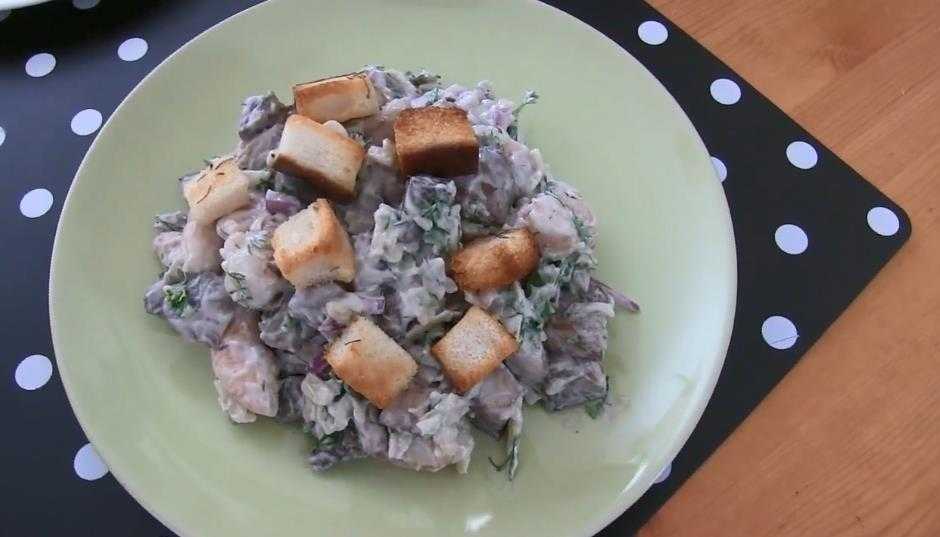 - Смазать майонезным соусом, посыпать перед подачей сухариками.