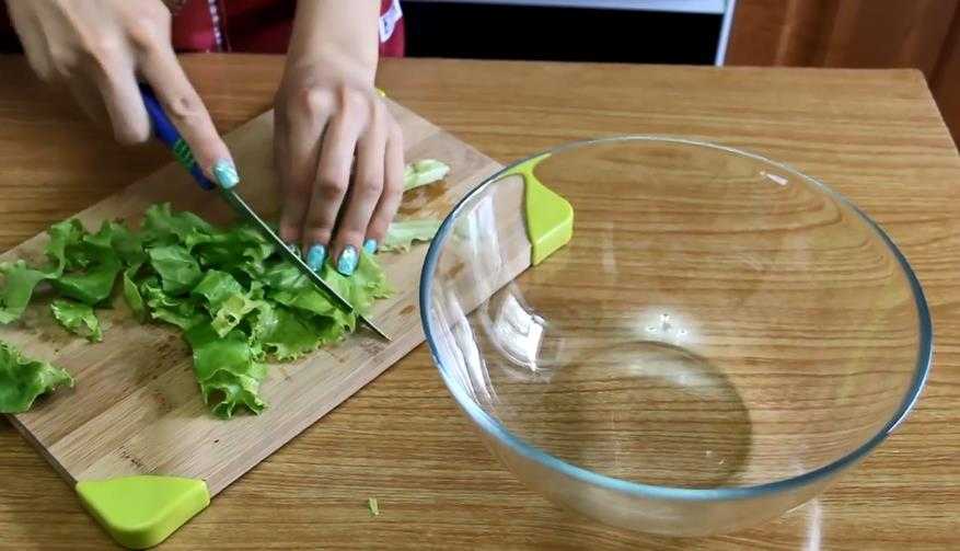 - Овощи промыть, у «зеленцов» удалить горькие кончики, у помидор плодоножки, порезать тоненькими ленточками.