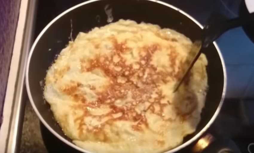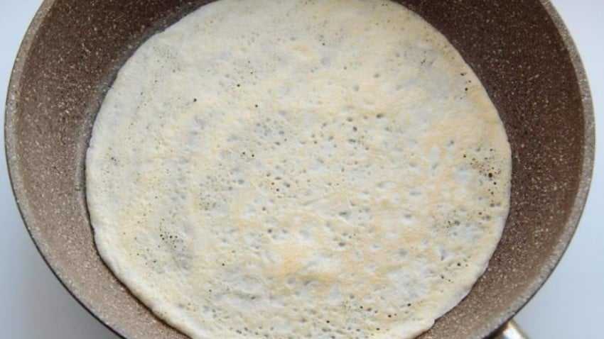 Важно не перелить жидкости, иначе блинчик развалится, он должен оставаться плотным