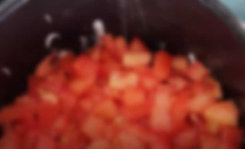 - Помидор без сока и семян нарезать средними ломтиками, повторить процесс с болгарским перцем, освобожденным от семян. Имбирь натереть на мелкой терке.