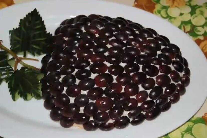- Положить сверху виноградные половинки выпуклой стороной кверху, прикрепить на верхней стороне пучок петрушки в виде веток.