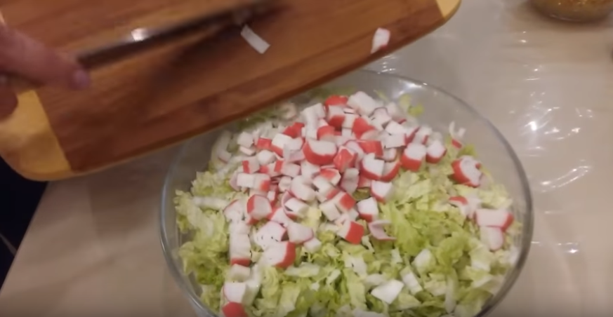 Очень вкусный салат с крабовыми палочками и капустой без кукурузы (видео-рецепт)