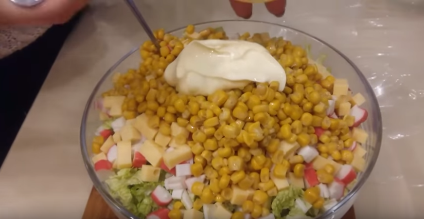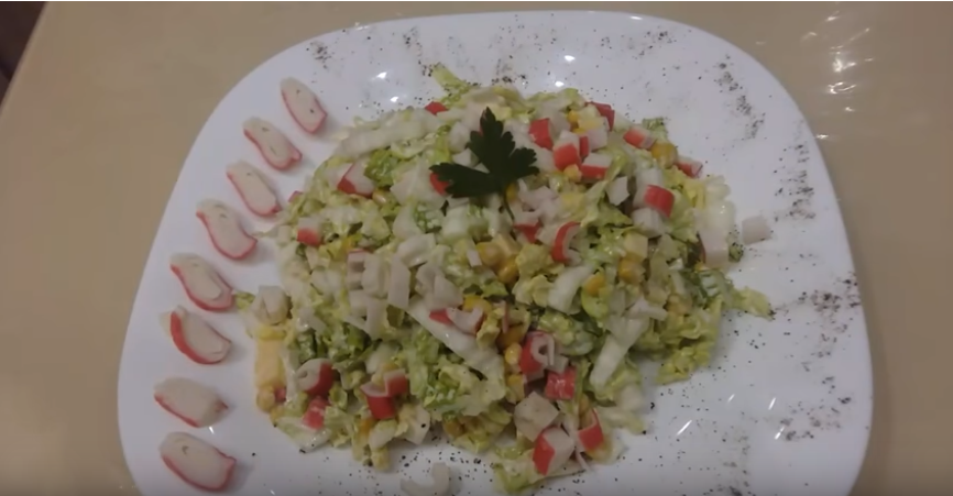 Самый вкусный салат с пекинской капустой, кукурузой и крабовыми палочками