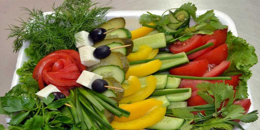 Овощи нарезать, красиво уложить на блюдо. Рядом поставить соус.