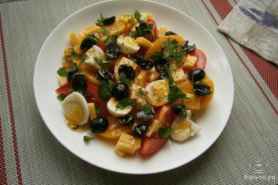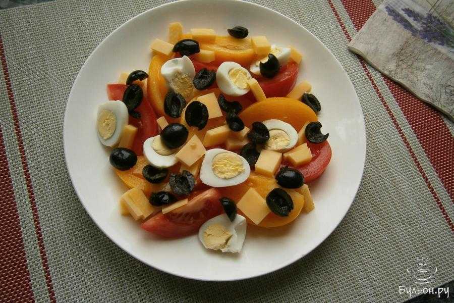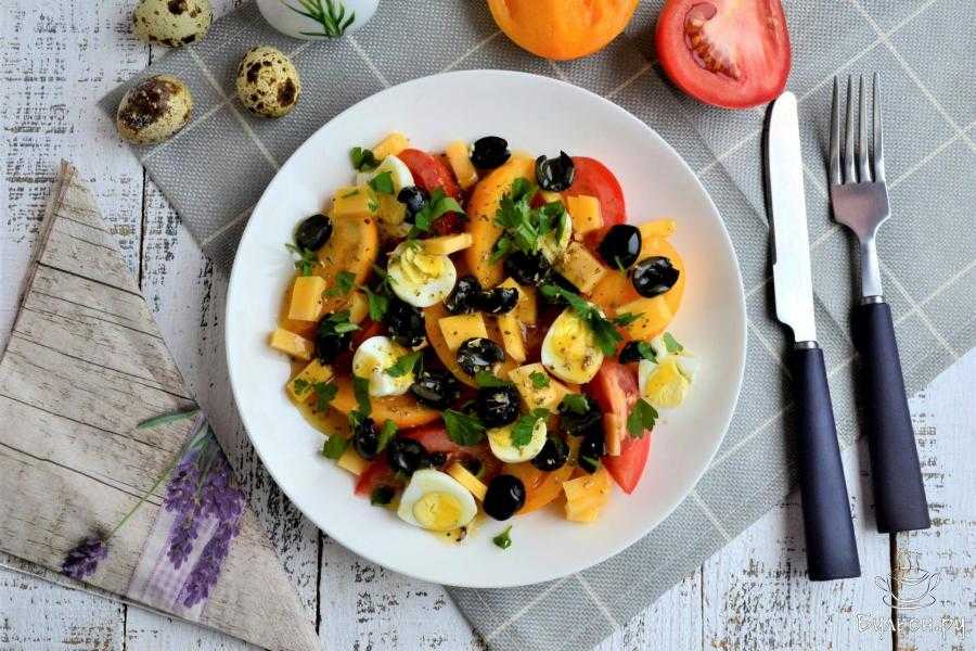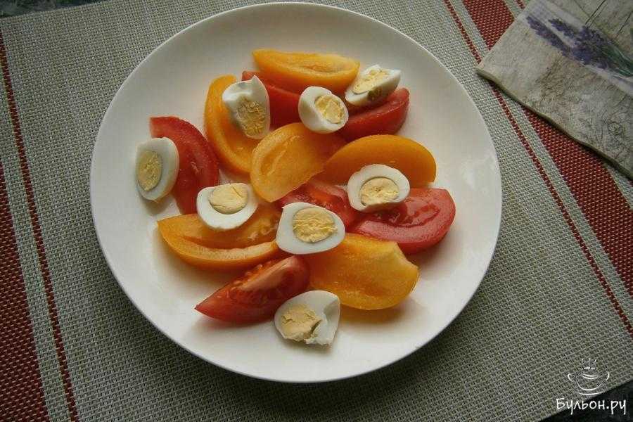 Салат с перепелиными яйцами, помидорами-черри и моцареллой