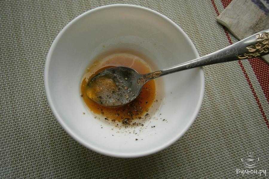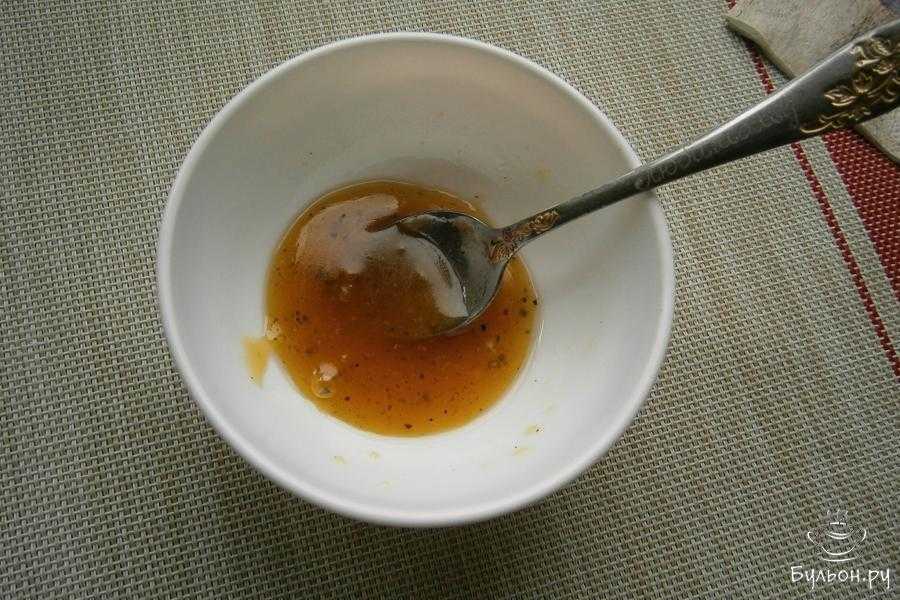 Заправку готовим на свой вкус , для этого смешиваем майонез , горчицу , масло , лимонный сок или уксус , соль , сахар , приправы. Дадите больше лимонного сока — будет кислее , больше соли — будет соленая , больше горчицы — будет хорошо печь . Я в основном беру все » на глаз » . Если хочется жидкую заправку , то добавляю воды. Если нет настроения на майонез , можно и без майонеза.