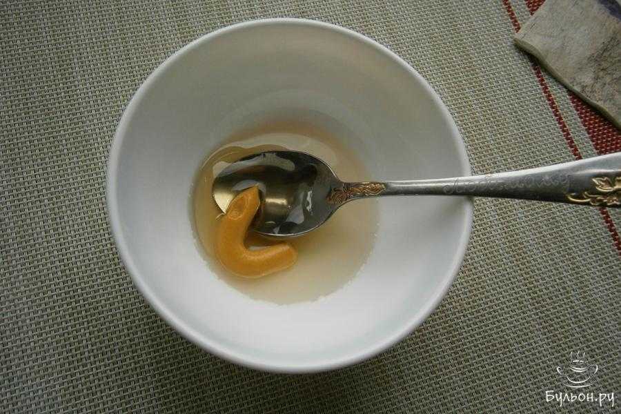 Готовим заправку. Соединяем лимонный сок и растительное масло. Сбиваем венчиком, вилкой или силиконовой кисточкой до состояния эмульсии.
