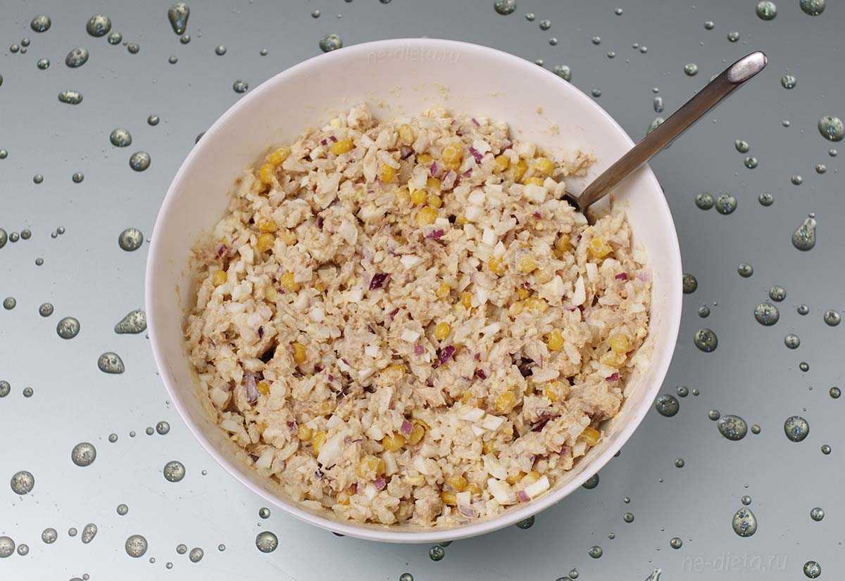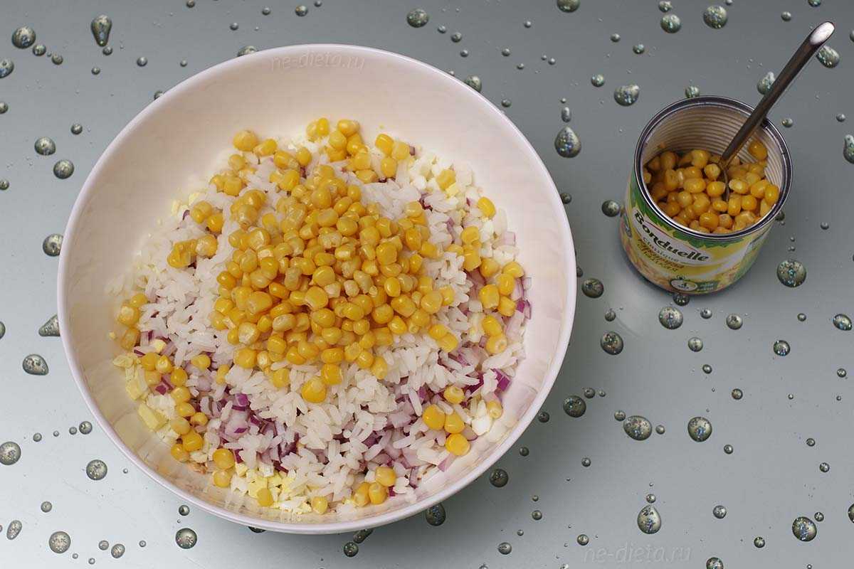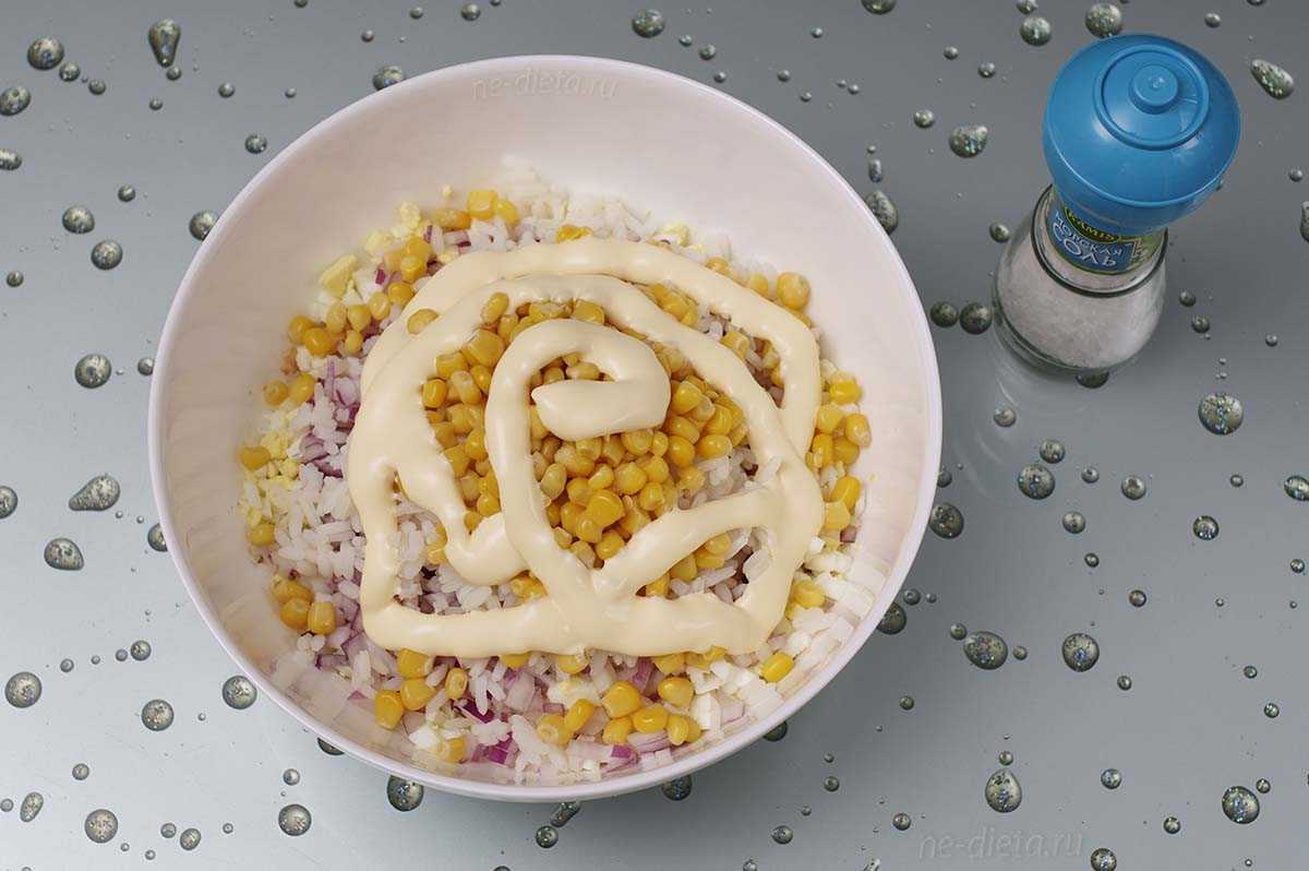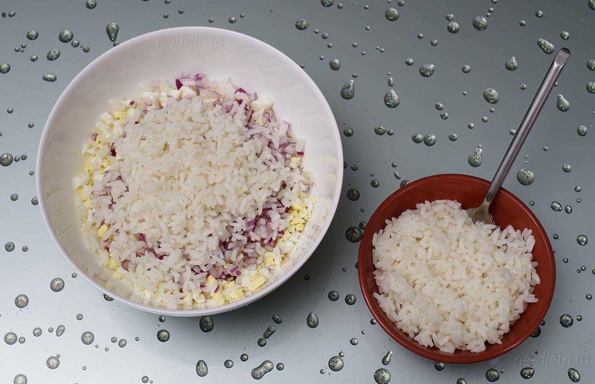 Салат с рисом и консервированной рыбой можно приготовить следующим образом: