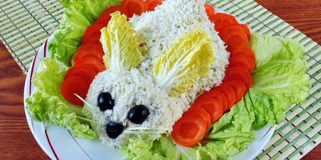 Оригинальный салат в форме кролика станет украшением новогоднего стола 2023 и будет знаком внимания новому хозяину. По питательности вполне заменит основное блюдо.