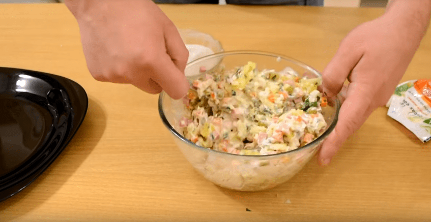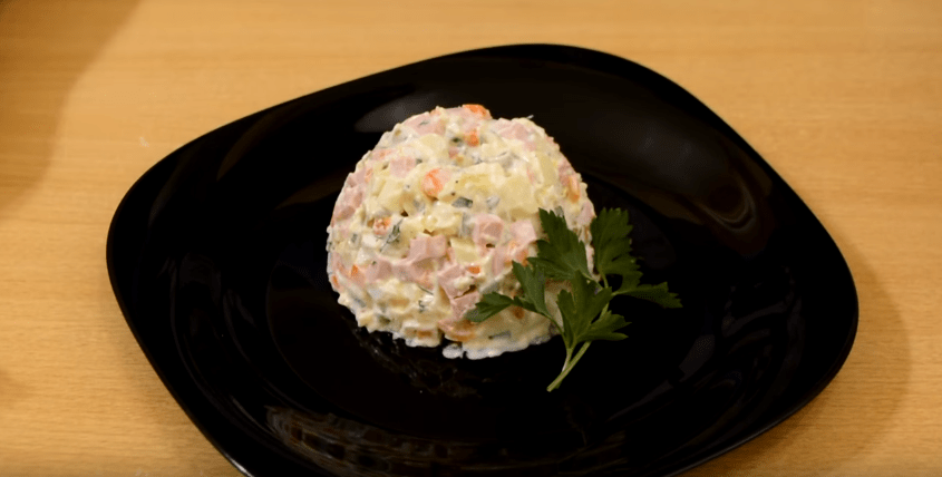 Салат оливье — очень вкусный классический рецепт с колбасой и солеными огурцами