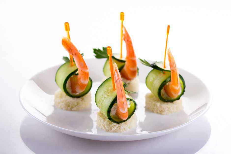 Идеи для маленьких рыбных тарталеток канапе на шпажках