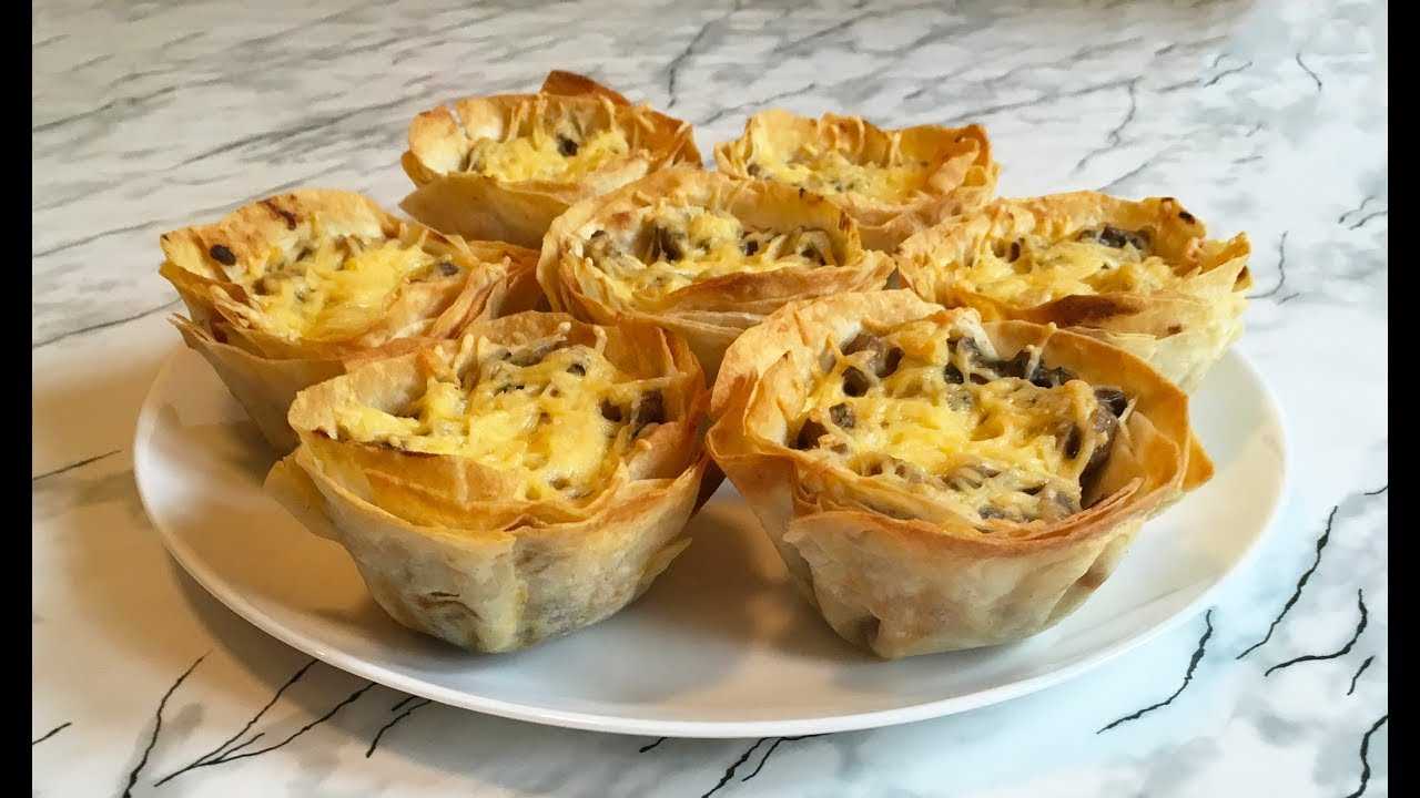 - Смесь шампиньонов и курицы распределяем по тарталеткам.