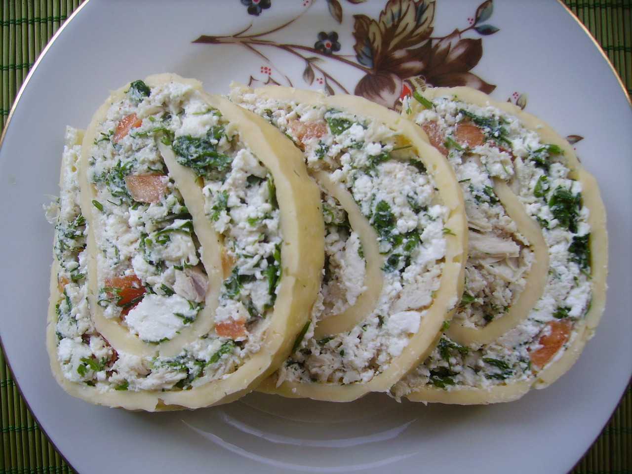 - На готовые блины положить начинку (по 1-2 ст. ложки на блин).