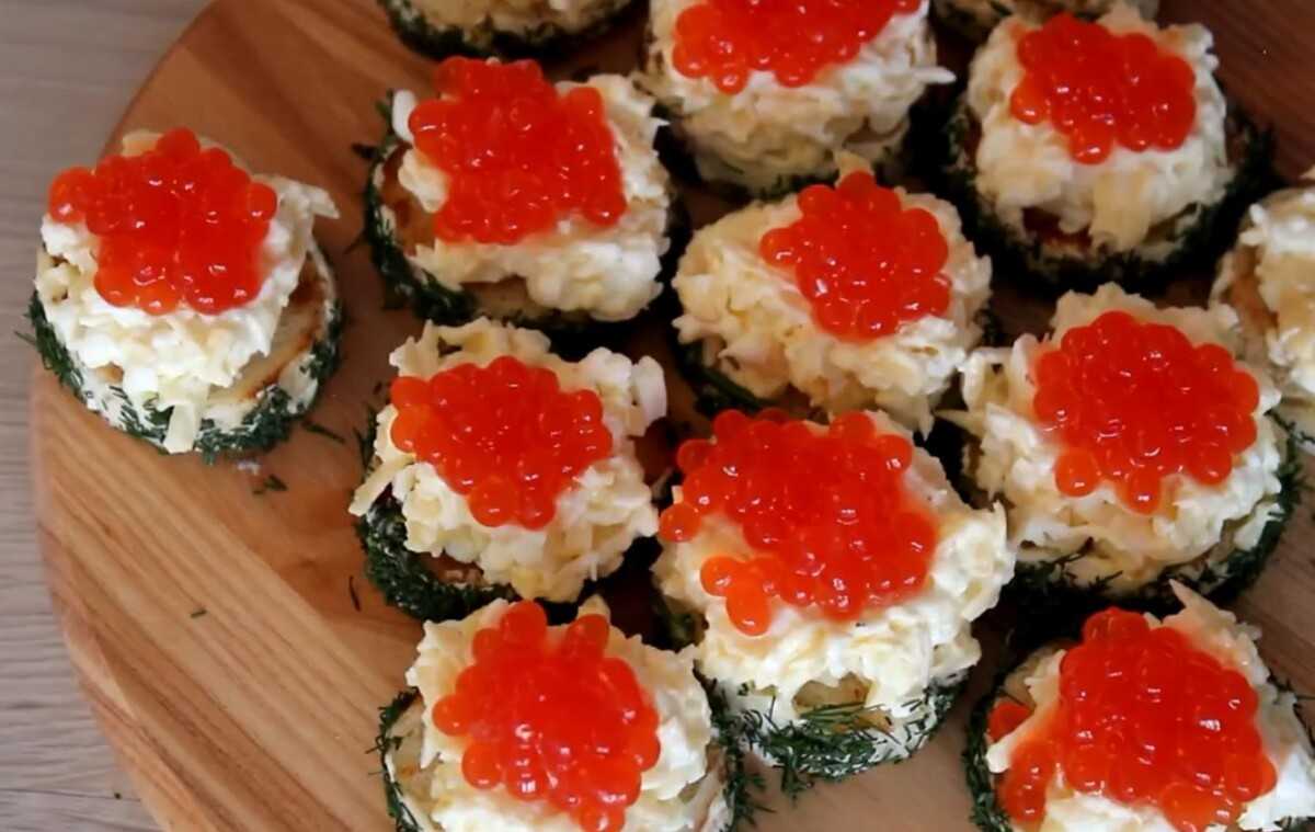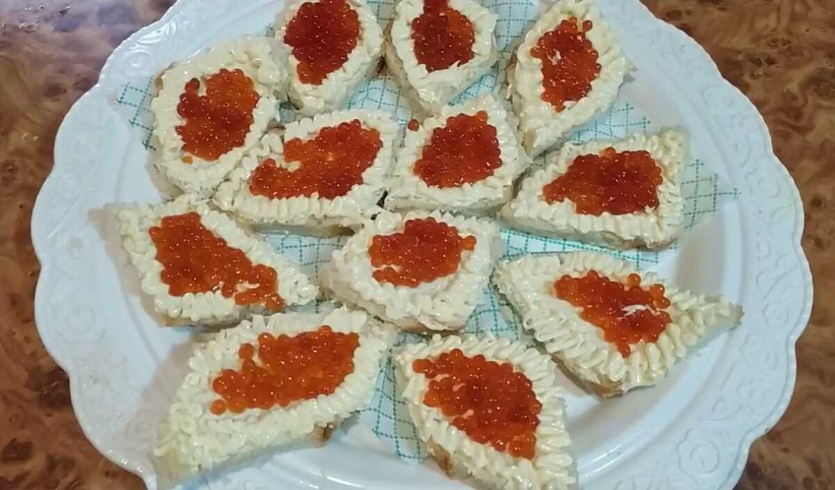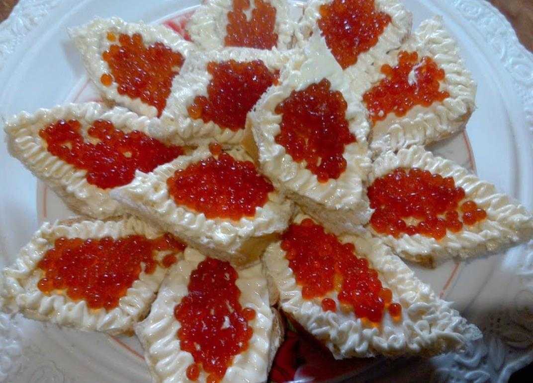 Бутерброды на праздничный стол с красной икрой и яйцом