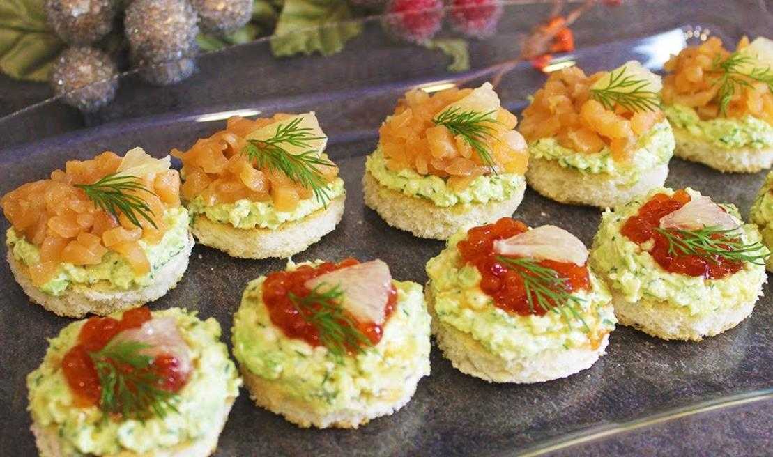 Закуска в тарталетках с кремом из авокадо и красной икрой