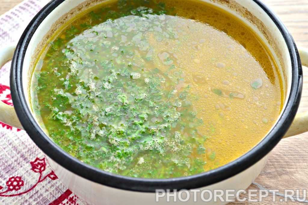 - Заправку аккуратно добавляем в бульон. Пробуем на соль, досаливаем.