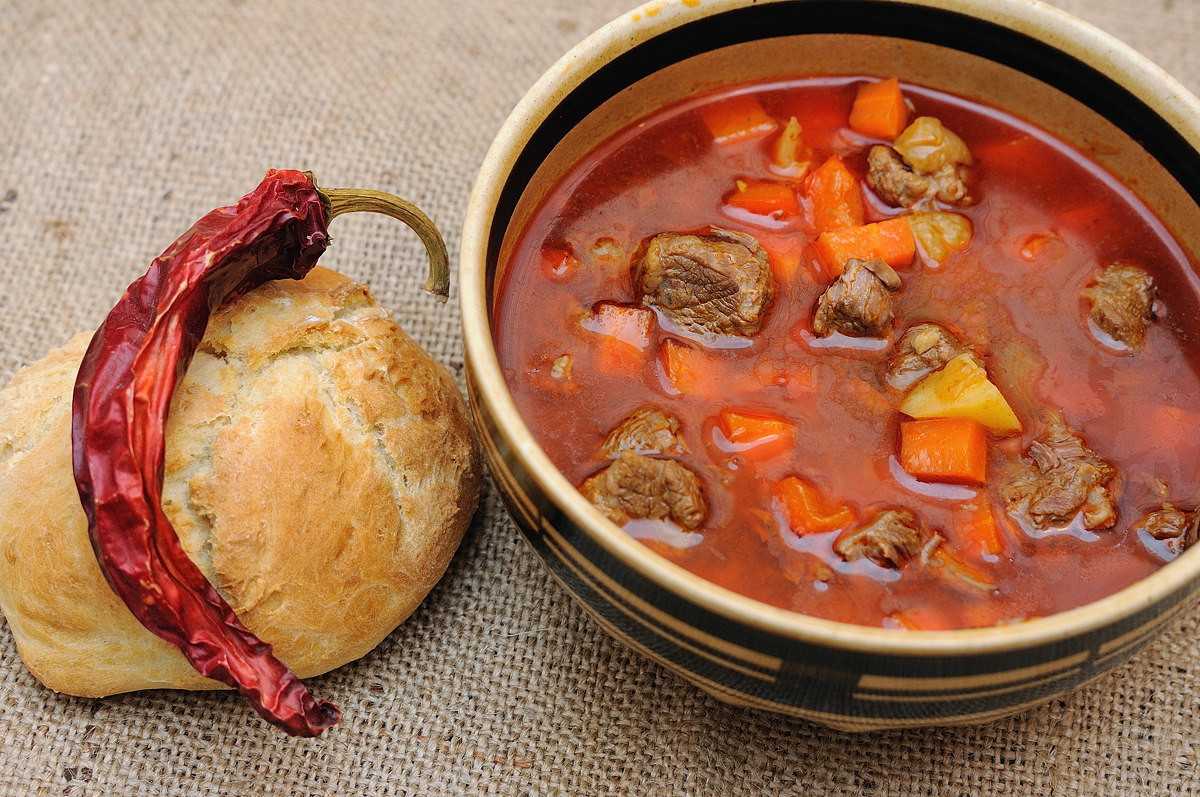 Густой и сытный суп гуляш – популярное блюдо венгерской кухни. Его готовят в ресторанах и кафе, но домашний суп получается еще более вкусным. Блюдо содержит немало калорий и отлично согревает зимой. Правильно приготовленный гуляш эффектно смотрится на фото, при этом готовить его достаточно просто.